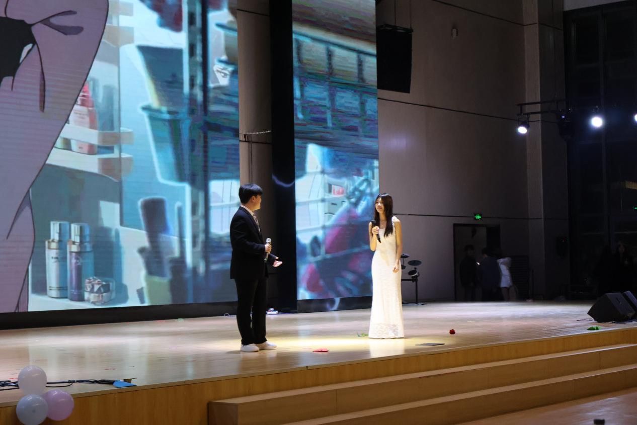 艺术传媒系两人深情对唱《唯一》,温柔的旋律如潺潺溪流,流淌进观众的心田。歌声悠扬,仿佛在讲述一段刻骨铭心的青春故事,每一个音符都饱含着浓浓的爱意,令现场观众沉浸在浪漫的氛围之中。