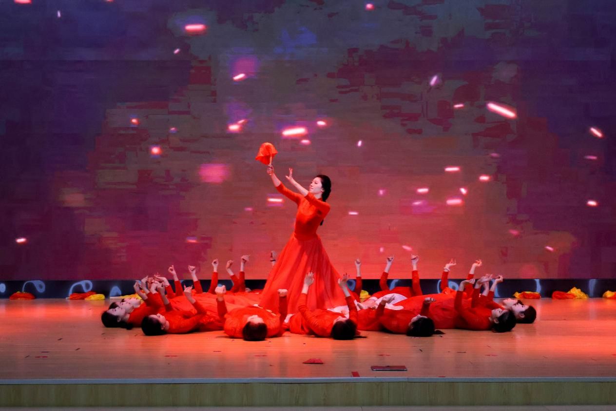 天麟艺术团中国舞队翩然起舞,献上《星星之火》。舞者们身着华服,身姿曼妙,恰似夜空中闪烁的星辰。她们以轻盈的舞步和灵动的手势,演绎着青春的希望与力量,如点点星火,虽渺小却蕴含着燎原之势,在舞台上绽放出璀璨的光芒。