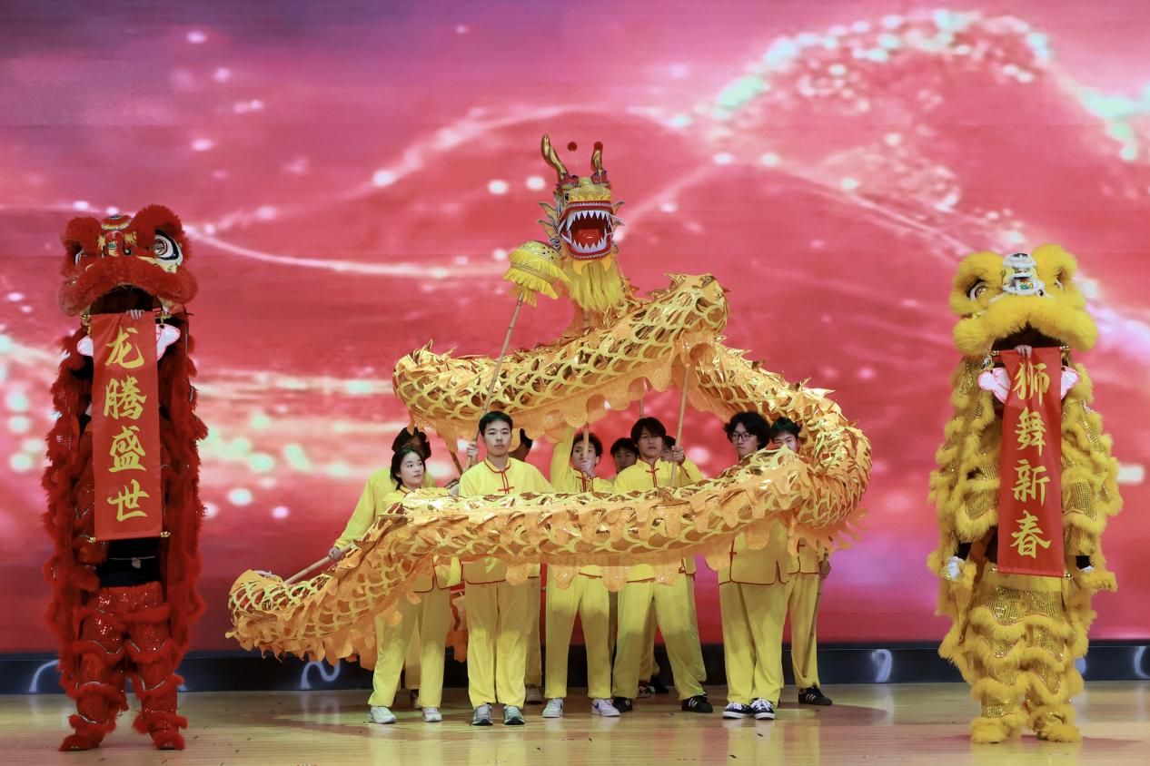 晚会伊始,建筑工程系舞龙舞狮队踏鼓而来,带来《灵狮戏珠》。金龙如矫龙出海,腾挪游弋间尽显王者风范;醒狮似灵物入世,闪转腾挪时满含祥瑞之气。他们以灵动之姿与磅礴之势,拉开晚会的华美序幕,恰似在诉说着新岁的蓬勃生机与美好愿景。