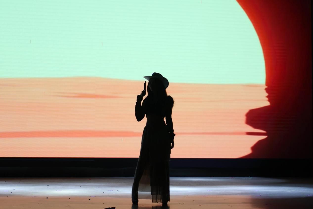 天麟艺术团模特队款款走来,带来《西部回响》。模特们身着极具西部风情的服饰,步伐稳健而自信,气场强大而独特。他们仿佛从广袤无垠的西部大地走来,将那片土地的豪迈与粗犷、神秘与浪漫,以时尚的形式呈现在观众眼前,带来一场别具一格的视觉盛宴。