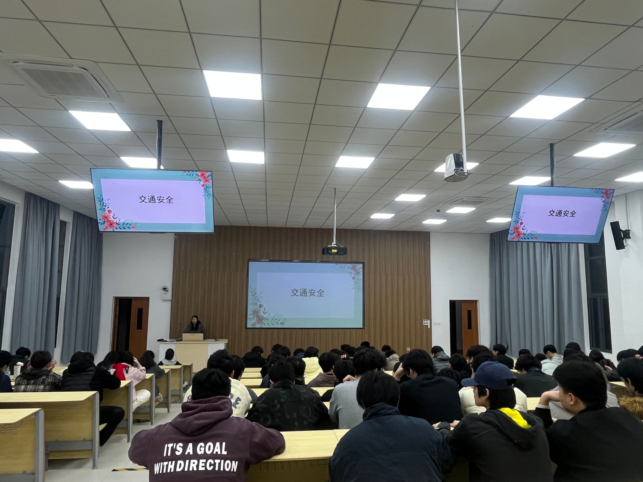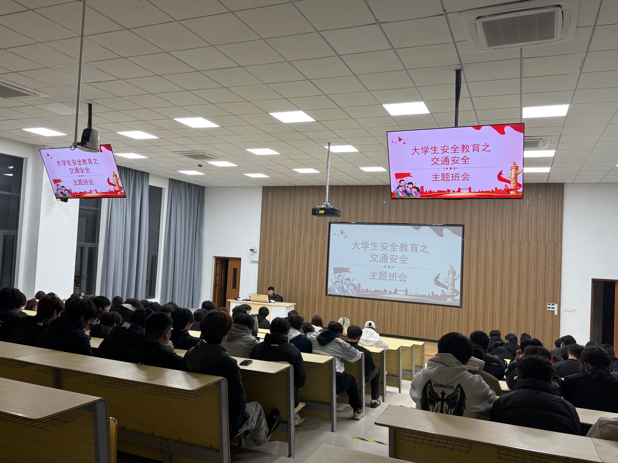 针对即将到来的寒假,班会重点开展了交通安全专题教育。辅导员结合冬季出行特点,从离校返乡、假期出行、返校途中三个环节提出具体建议:一是提前规划行程,选择正规交通工具,不乘坐无牌无证车辆;二是途中看管好个人物品,保持通讯畅通,及时向家人报告行程;三是遵守交通规则,尤其注意雨雪天气出行安全。通过交通安全事故案例分析,同学们深刻认识到“生命无价,安全至上”。