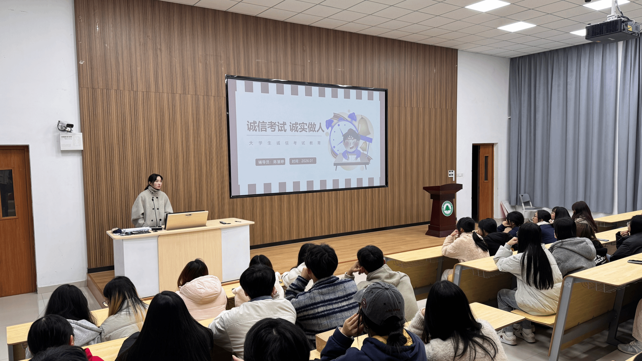 班会上,辅导员首先就即将到来的期末考试进行诚信教育动员。通过解读《学生考试纪律规定》,结合典型案例,详细阐述了考试违纪行为的严重后果,引导同学们树立“诚信为本、严谨求学”的观念。班会强调,诚信不仅是对学业质量的检验,更是人格品质的体现。