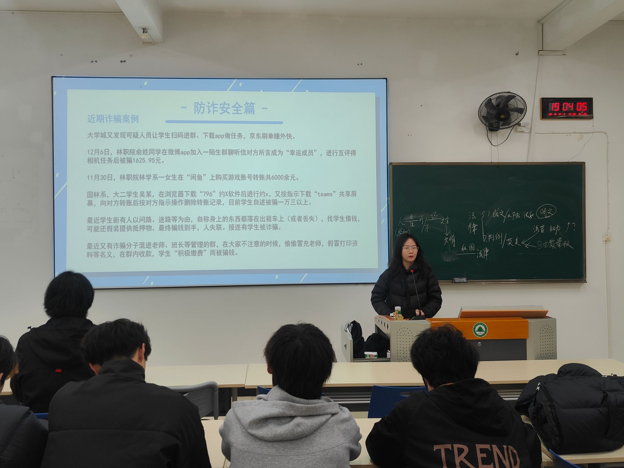 在互动环节,同学们就购票安全、网络诈骗防范、离校宿舍检查等具体问题进行了交流。辅导员逐一解答,并提醒大家务必完成离校登记,关闭宿舍电源水源,确保校园安全。