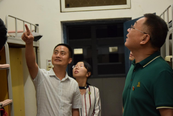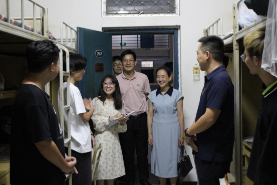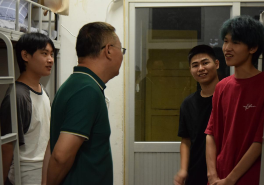 本网讯/为进一步了解新生的入校状况,加强师生交流,切实解决学生所遇到的实际问题,9月8日晚7点,我院学工部部长蔡敏、建筑工程系党总支书记魏长专、系主任彭忠伟、系副主任张李平、专职组织员叶新颖、系教务科科长廖坤阳、系学生科科长兼团总支书记刘克芹及新生辅导员共同前往新生宿舍看望新同学。