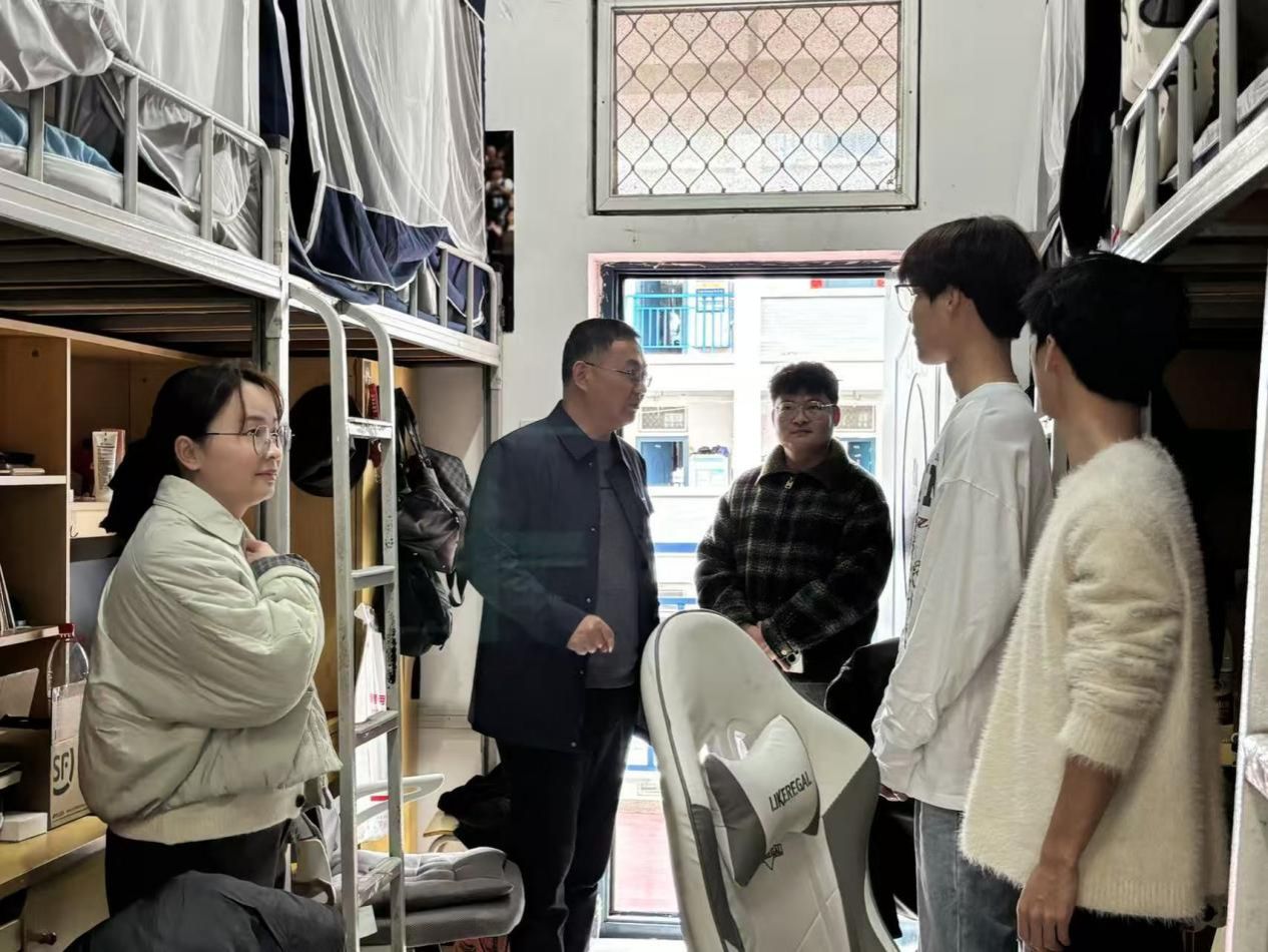 走进学生宿舍,暖意扑面而来。各位领导老师与同学们亲切互动,深入了解了同学们的假期生活、新学期的个人规划和目标,针对学生们提出的问题给出针对性的建议。同时,对学生宿舍卫生和安全隐患进行摸底排查,叮嘱同学们要提高个人安全意识,谨防电信诈骗,注意人身安全、财产安全、用电安全。在宿舍要保持良好的卫生环境,相互关心、相互帮助,共同营造良好的学习、生活环境,以全新的精神面貌迎接新学期的学习生活。