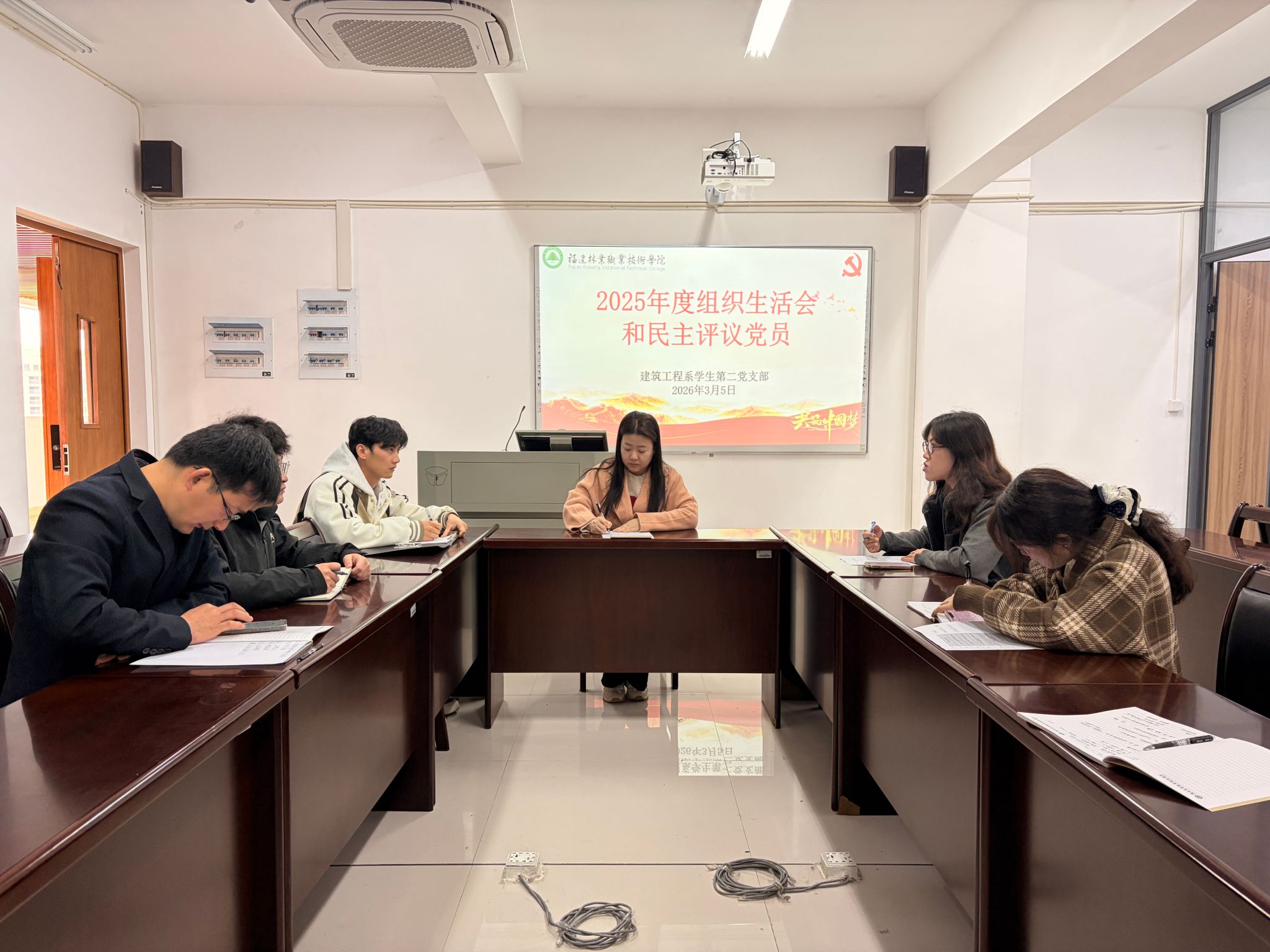 本网讯/为深入学习贯彻上级党组织部署要求,强化基层党组织战斗堡垒作用,锤炼青年党员党性修养,进一步提升党支部的凝聚力和战斗力,2026年3月5日,建筑工程系学生第二党支部在建工楼502会议室召开2025年度组织生活会。本次会议由建筑工程系学生第二党支部书记李媛主持,全体师生党员和预备党员参加。