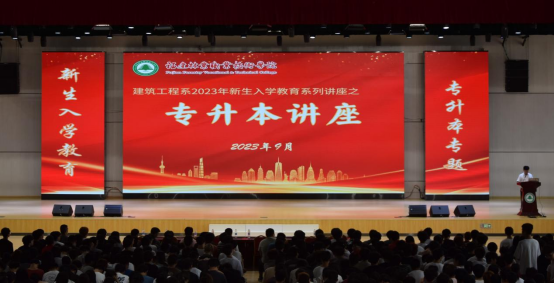 本网讯/为进一步落实立德树人的根本任务,增强学生对专升本相关政策以及相关课程的了解,帮助更多“天麟学子”了解更多关于专升本的信息,提供更好的学习方法,树立中长期奋斗目标,建筑工程系于2023 年 9 月17日早上在江南体育馆召开“专升本”讲座。本次讲座由我系优秀毕业校友建筑工程技术2004班谢睿凯同学主讲。