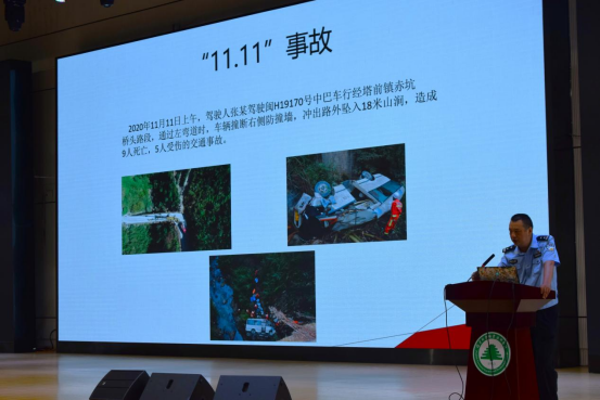 讲座中,廖健敏警官和乐树华警官结合典型交通违法和事故案例,为大家详细讲解了交通事故的预防和处置方式,从我们面临的道路交通安全形势、道路交通相关法律常识、行车过程安全驾驶以及事故后怎么做等几个方面进行讲述,宣传了遵守交通规则的重要性、道路交通事故预防事项、发生交通事故应该怎么办等安全防护常识。