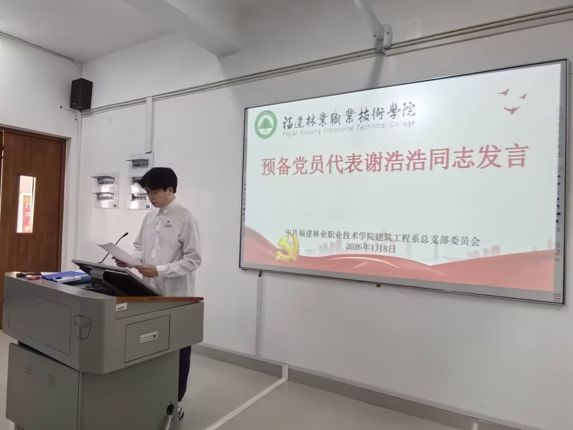 预备党员代表谢浩浩、入党积极分子代表谢鑫蕊先后发言,表达坚定跟党走、立足岗位担当作为的信念,展现青年学子向党组织靠拢、勇担使命的精神风貌。