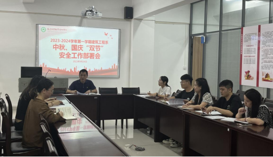 紧接着,9月26日上午,建筑工程系学工组召开中秋、国庆“双节”安全工作部署会议。党总支书记魏长专在会上传达了全省学生交通安全行动暨秋季学期学校安全工作视频会议的精神,重点强调了节假日期间学生出行交通安全、留校安全、食品卫生、防诈骗、防溺水、心理健康和网络安全等方面的重要性,并对10月新生军训的安全注意事项进行了详细部署。