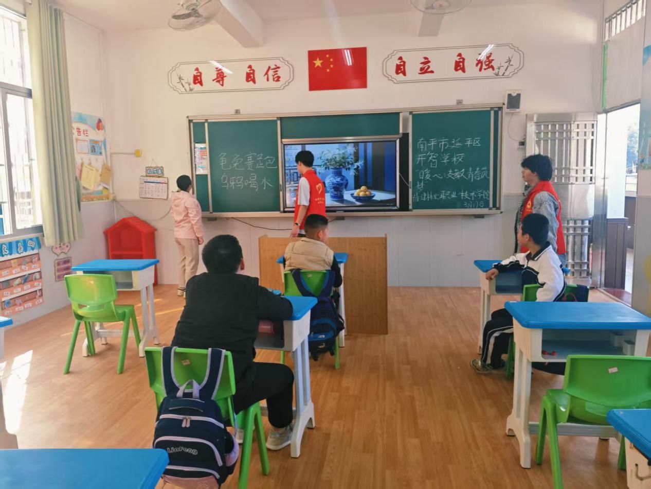 温暖有趣的故事课上,志愿者们用温柔生动的语调,为孩子们讲述了大家耳熟能详的《龟兔赛跑》和《乌鸦喝水》两个经典寓言故事。在有趣的故事情节中,孩子们认真聆听、沉浸其中,不仅收获了快乐,更从中明白了做事要坚持不懈、遇到困难要善于动脑的道理。