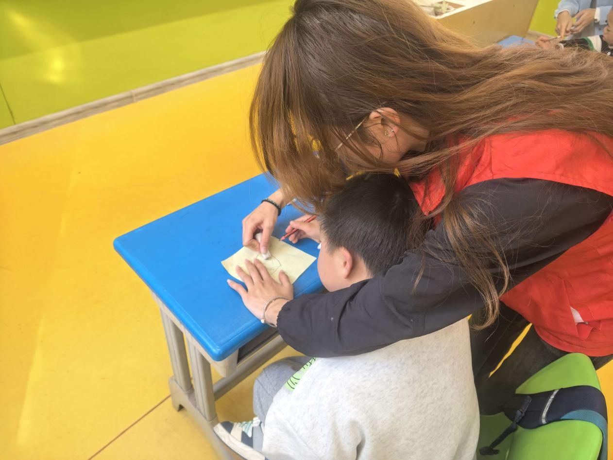 在轻松愉快的游戏课上,志愿者们耐心陪伴、亲切引导,带着孩子们一起用大自然中的树叶进行创意作画。大家一起挑选形状各异的树叶,拼贴、组合、涂色,在动手实践中感受自然之美。每一幅简单质朴的树叶画,都承载着孩子们纯真的创意,也记录下志愿者与孩子们相伴的温暖时光。