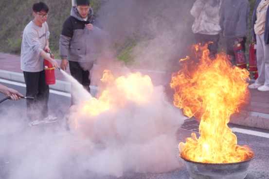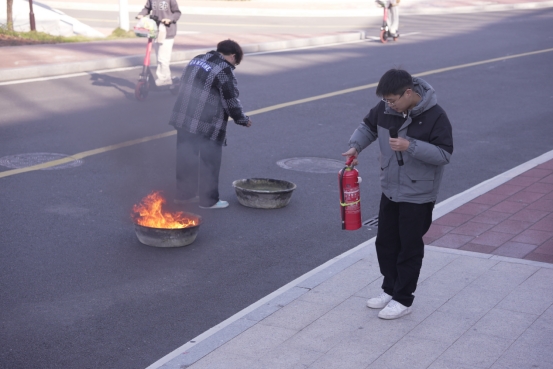 最后安保处李靖瑜老师向全体师生讲解并演示了灭火器的正确使用方法。讲解人员从特点入手,结合火灾案例、灭火器材使用、如何预防实验室火灾、发生火灾后如何逃生自救等消防安全知识进行讲解,并让现场的师生代表开展灭火器实战演练。