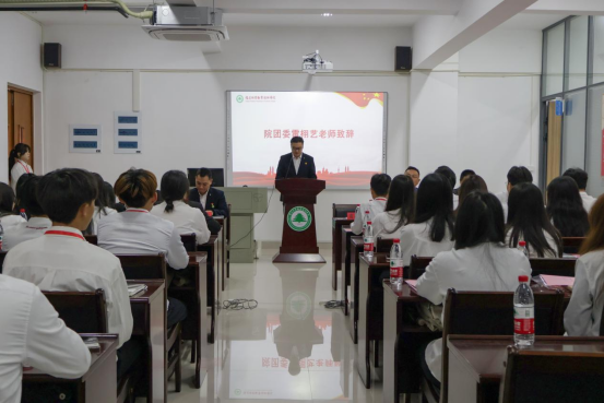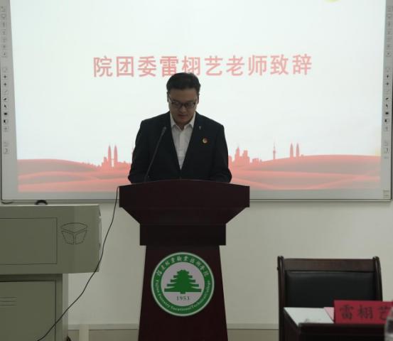 院团委副书记雷栩艺老师为大会致辞,他对大会的召开表示热烈祝贺,他表示建筑工程系团总支学生会在系党总支的领导下和院团委的指导下高举新时代爱国主义伟大旗帜,努力打造青年学生的共同思想基础,积极围绕系部改革发展大局发挥青年学生的主人公作用,践行敬业、吃苦、务实、进取的天麟精神,营造优良校风学风。并提出了今后在工作上的几点要求:一、要适应新形势新要求,进一步改进工作方式,拓展工作渠道,创新工作方法,增强工作效果,引导同学们用更加理性、深刻、全面的思想认识,正确看待社会、人生,在学习实践中把坚持爱国主义、社会主义和党的领导统一起来,把民族精神和时代精神联系起来,把个人的追求和国家的前途命运结合起来,努力与祖国共奋进、与时代同发展。二、要进一步强化对青年学生的力量凝聚,完善组织体系,打造特色品牌活动,树立优良形象,引领青年成长成才。把广大青年学生当中蕴藏的创新潜能和创造活力激发出来,汇集起来,在创建双高院校的征途中发挥更大作用,展示更大作为。三、要进一步强化对青年学生的成长服务,围绕广大青年在学习教育、文化生活等方面的利益需求,开展技工助学、结对帮扶、社会实践等活动;把做好大学生思想政治教育与帮助解决实际困难结合,把服务大学生成长成才与促进数字拓展结合,把竭诚服务与合法权益维护结合,争取办实事,不断提高组织服务青年学生的能力和水平。四、要进一步强化团组织、学生会对青年学生的组织覆盖,积极探索新的组织方式,实现对广大青年学生的立体交叉覆盖,巩固和扩大青年群众基础。