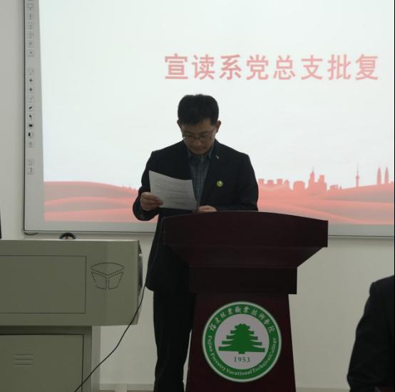 建筑工程系专职组织员叶新颖老师宣读系党总支批复