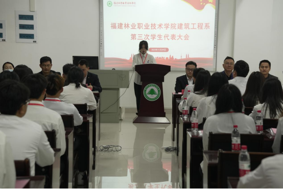本网讯/为深入学习贯彻习近平新时代中国特色社会主义思想和党的二十大精神,加强我校学生组织建设,充分发挥学生会组织的主力军作用,2023年11月29日,福建林业职业技术学院建筑工程系第三次学生代表大会在建工楼5楼会议室隆重召开。此次出席会议的老师有:院团委副书记(主持工作)雷栩艺、建筑工程系党总支书记魏长专、系主任彭忠伟、系副主任张李平、系专职组织员叶新颖、系教学科科长廖坤阳、系学生科科长兼团总支书记刘克芹、系学生第一党支部书记陈慧婷、系学生第二党支部书记张道良、系学生第二党支部副书记林燕琼。本次大会由团总支副书记林宇婷主持。