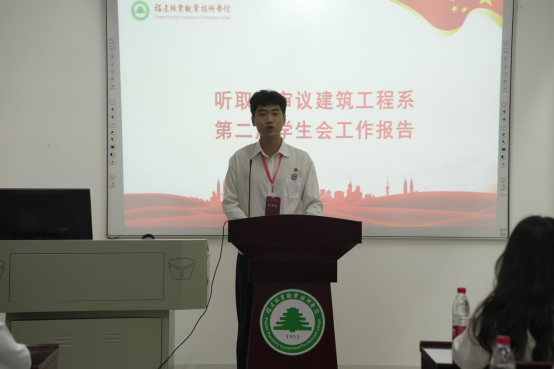 会议重点审议并通过了福建林业职业技术学院建筑工程系第三届学生代表大会选举方法和大会选举监票人、计票人名单;最后进行大会选举,选举产生建筑工程系第三届学生委员会委员、建筑工程系第三届学生会主席团成员、建筑工程系出席院学生代表大会代表。