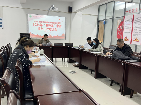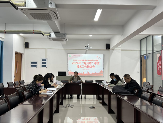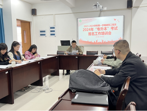 本网讯/12月14日下午,建筑工程系在建工楼5楼会议室召开了2024年“专升本”报名工作培训会。会议由系党总支书记魏长专主持,全系毕业班专兼职辅导员参加。