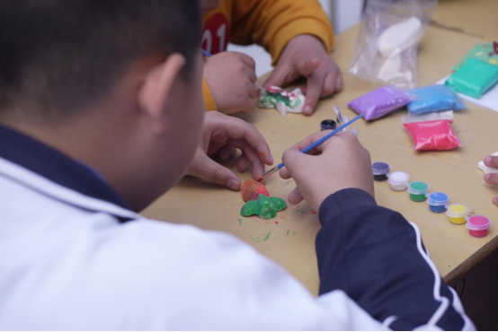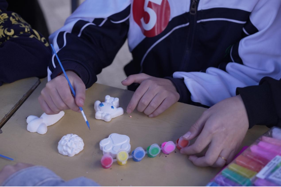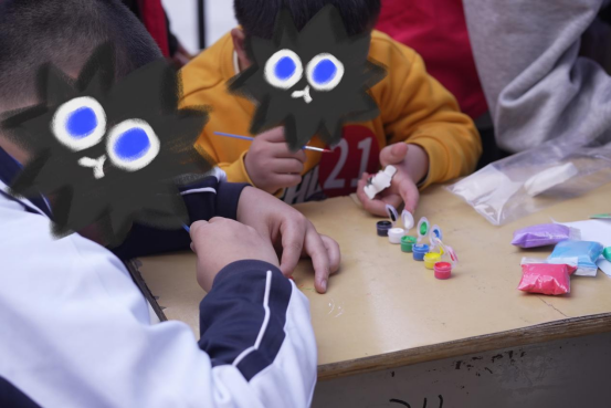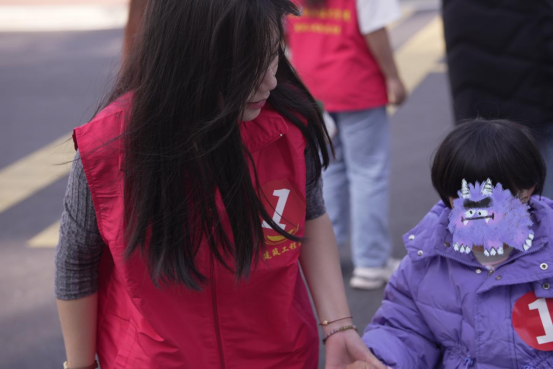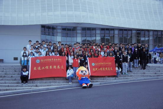 与此同时,青年志愿者们在校门口等待着小朋友们的到来。志愿者们一人带领一个小朋友,他们身上的号码牌与小朋友们身上的号码牌一一对应,不仅是爱与爱之间的联系,更是两个学校的紧密连接;随后各位志愿者们手牵手带领小朋友们共同前往江南体育馆观赏系部学生制作的建筑模型作品。