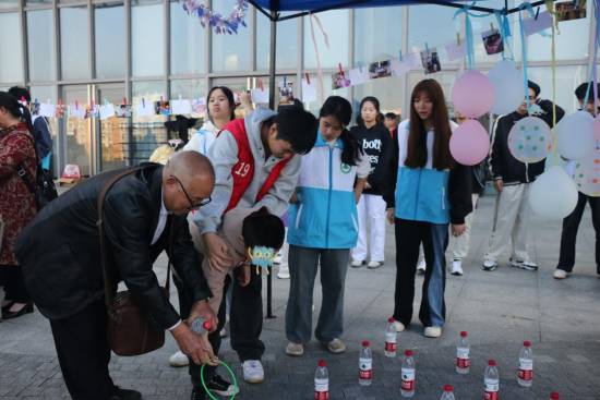 紧接着来到游戏环节,青年志愿者们一同与小朋友们进行保龄球、黏土、套圈圈等游戏互动,现场氛围温馨和谐,欢声笑语不绝于耳,小朋友、家长和志愿者的脸上都洋溢着欢快的笑容。