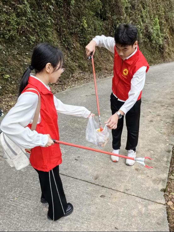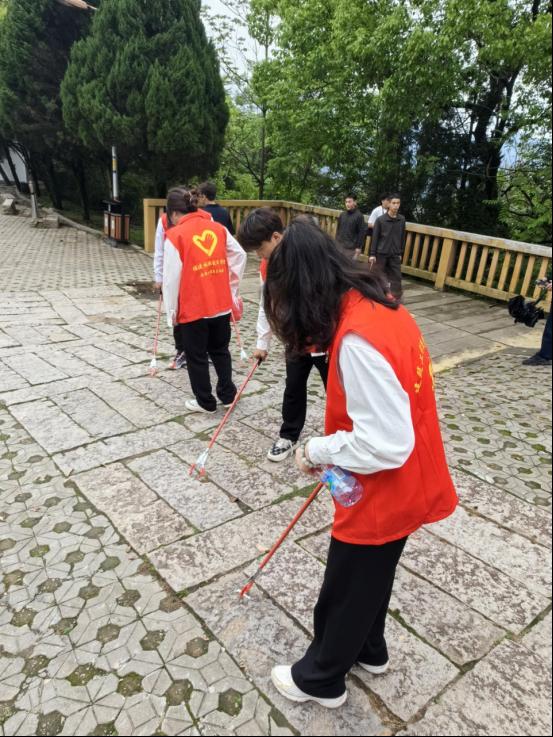 在祭扫的途中,建筑工程系学生科科长兼团总支书记刘克芹和专职组织员叶新颖老师充分发挥领头作用,带领同学们将沿途的垃圾清理干净,充分发挥党员志愿者不怕脏不怕累的精神风貌,还大自然一份原本的清洁,也同时向行人传递了爱护环境的积极理念。