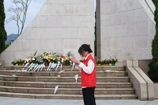本次祭扫活动由建筑工程系系学生科科长兼团总支书记刘克芹和专职组织员叶新颖老师带领同学们怀着沉重和崇敬的心情来到南平市革命烈士碑前,对烈士们进行缅怀。全体师生肃立,三鞠躬,默哀一分钟,以寄托对烈士的无限哀思。建筑工程系专职组织员叶新颖老师作动员,叮嘱同学们铭记历史,向先烈们学习,不忘初心,不怕吃苦,甘于奉献,赓续红色血脉,要将先烈们顽强拼搏,勇于面对困难的革命精神传承下去。由学生代表林宇婷向先烈宣誓誓言,她表示应心怀感恩,脚踏实地,勤奋学习,锤炼本领,涵养品德,树立远大理想,时刻牢记时代赋予的使命与责任。