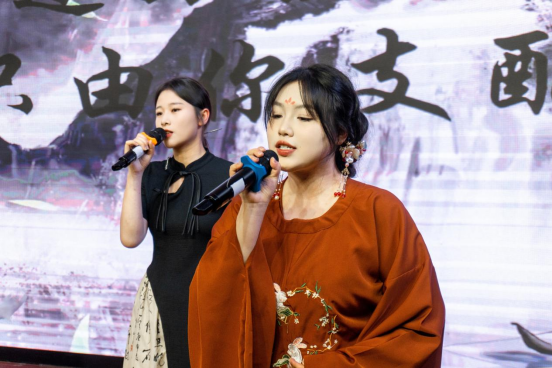 其中,余荟轩、范馨月、李亦非、赖丽仙、毛桦桉为我们带来的歌伴舞——《牵丝戏》,歌声与戏曲的唱腔相结合,营造出一种古典与现代交融的艺术氛围。于易琳、薛佳怡、郑婷,带来的舞蹈——《暴走霸王》,则充分展现出青春的朝气。