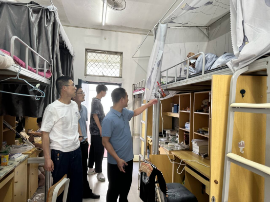 本网讯/为确保学生宿舍的安全,减少安全事故的发生,及时发现并解决宿舍中存在的安全隐患,为学生提供一个安全、舒适的居住环境。建筑工程系于5月13日至5月14日对全体学生宿舍进行一次全面的安全隐患排查。建筑工程系党总支书记魏长专、副主任张李平、专职组织员叶新颖、教务科科长廖坤阳、学生科科长兼团总支书记刘克芹以及各辅导员组成检查小组,对各个宿舍进行了逐层逐间的细致检查。检查内容涵盖了消防安全、用电安全、设施设备安全等多个方面。