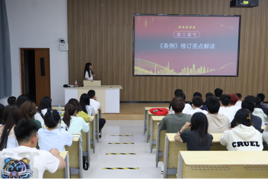 本网讯/为深入学习贯彻习近平总书记关于党纪学习教育的重要讲话和重要指示精神,持续深入推进党纪学习教育走深走实。2024年5月13日,建筑工程系学生第一党支部书记陈慧婷在第二阶梯教室开设学习《中国共产党纪律处分条例》(以下简称《条例》)专题党课,建筑工程系学生第一党支部全体师生党员、入党积极分子参加了本次学习。