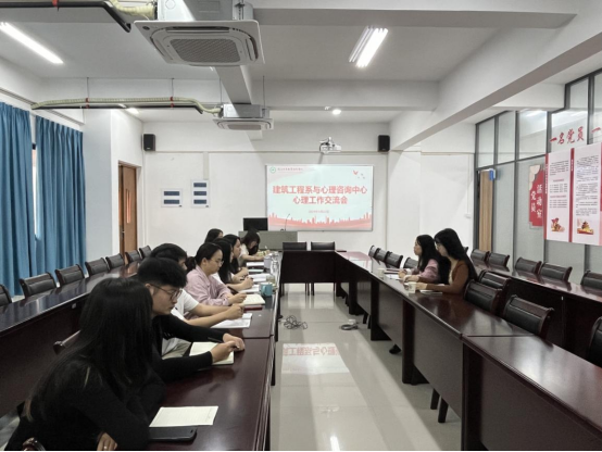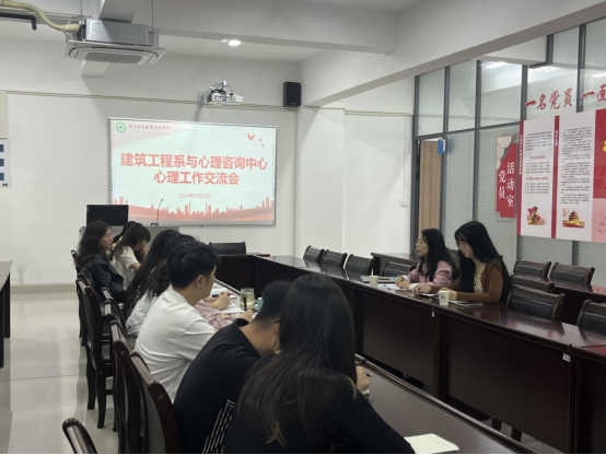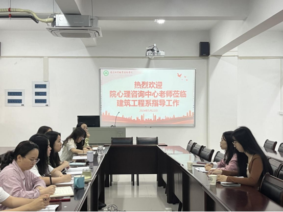 本网讯/为加强心理健康教育与支持体系的建设,促进院系之间的合作与交流,共同探讨如何更好地关注和支持学生的心理健康需求,2024年5月22日,院心理咨询中心连双玲老师和黄韵秀老师一行到建筑工程系指导调研,建筑工程系学生工作组与院心理咨询中心联合开展心理工作交流会,系全体辅导员参会。