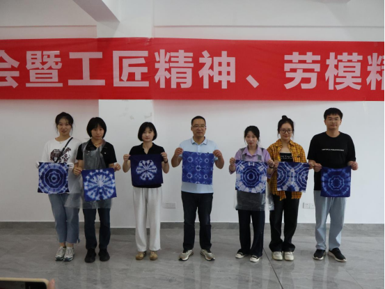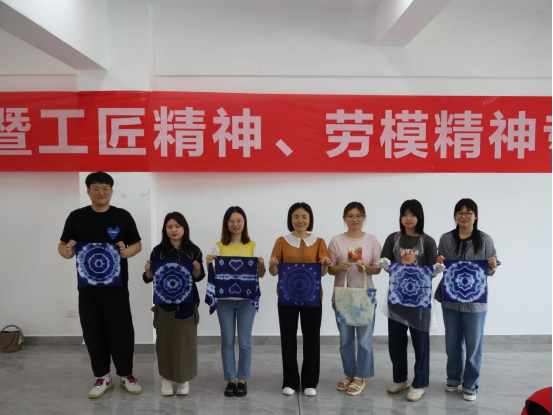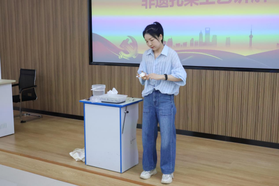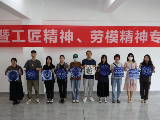 紧接着,由建筑工程系专职辅导员陈慧婷带来工匠精神、劳模精神学习与非遗扎染工艺讲解,通过学习工匠精神、劳模精神的重要论述,让辅导员们从中了解了在职业教育领域下,弘扬和学习工匠精神的必要性;并以工匠精神的物质表现——非物质文化遗产为切入点,为大家带来非遗扎染的工艺讲解。随后,张月英老师进行了扎染的实操讲解,她详细介绍了扎染工艺的基本知识、制作技巧等,并亲自展示了捆扎、浸染、晾晒等步骤,让在场的各位充分了解了扎染的制作过程。