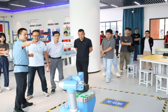 随后,由建筑工程系教务科科长廖坤阳带领辅导员们参观智能建造产教融合实训基地,该实训基地集教学、研究、实践于一体,展示了建筑工程系在产教融合方面取得的显著成果。辅导员们通过亲身体验,对智能建造的实际操作有了更直观的了解。