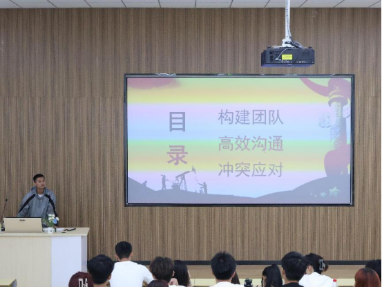 紧接着,由体育部部长王志鸿对“团队合作与沟通”进行专题分享。他以自身的经验和实际案例为基础,向在场同学传授了团队合作沟通的实践技巧。他强调,在团队合作中有效的沟通会事半功倍,缺乏沟通可能导致步履维艰甚至失败;因此在各尽其位、尽职尽责的同时还需加强合作,注意倾听、尊重他人、在发生分歧时第一时间进行有效沟通。