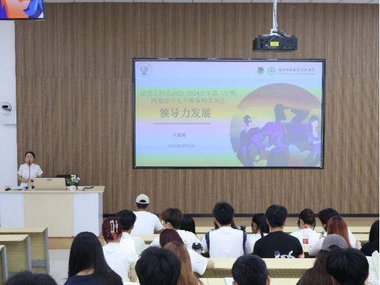 本网讯/为了进一步培养学生干部领导力及团队合作沟通能力,建筑工程系于2024年5月25日在江南校区阶梯教室二举办2023-2024学年第二学期两委会学生干部系列培训——领导力发展与团队合作沟通专题培训。本次培训由建筑工程系学生科科长兼团总支书记刘克芹主持,系学生会主席刘佳滨、体育部部长王志鸿主讲,2022级两委会学生干部代表和2023级两委会储备干部参加。