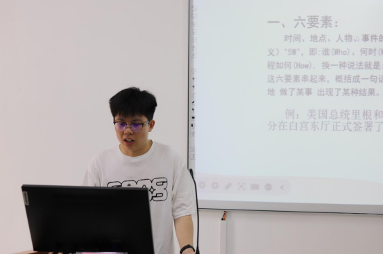 本网讯/为提升学生干部的集体形象与个人形象,增强媒体宣传与影响力,更好地服务学生群体推动系部发展。建筑工程系于2024年6月25日在江南校区建工楼502成功举办了2023-2024学年第二学期两委会学生干部系列培训——媒体宣传与品牌建设专题培训。本次培训由建筑工程系学生储备干部陈哲磊主持,他以热情洋溢的开场白拉开了培训的序幕。此次培训邀请了记者站、新媒体、宣传部等部门的负责人进行专题分享。