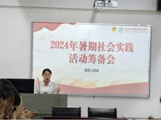 随后,社会实践团指导老师、系学生科科长兼团总支书记刘克芹主持了暑期社会实践活动筹备会,对实践团成员进行了细致分工,并明确了活动纪律和安全要求。她鼓励同学们以饱满的热情和严谨的态度投入到实践活动中,充分展现建筑工程系学子的精神风貌和良好形象。