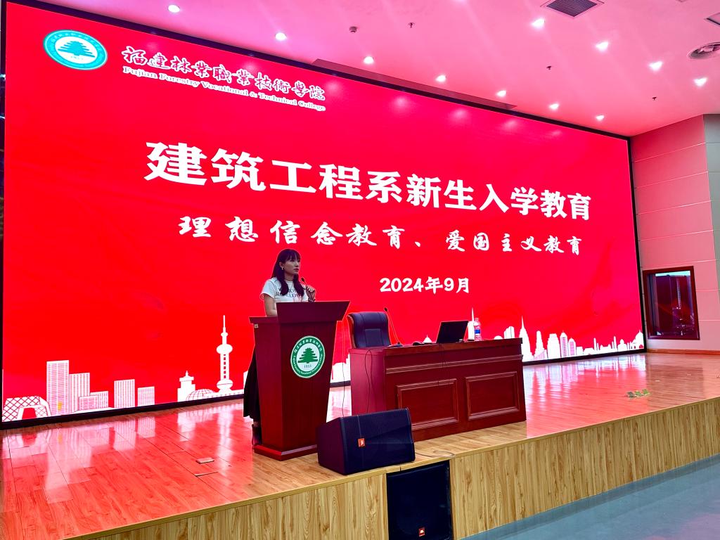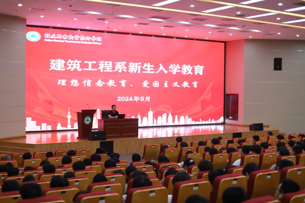 本网讯/为深入落实立德树人的根本任务,坚持为党育人、为国育才,激发学生的爱国热情,强化爱国主义与集体主义观念,增强学生的组织性和纪律性,培养新生团结拼搏的团队精神、良好的文明习惯与合作精神,9月7日,建筑工程系2024级新生入学教育系列讲座在学术报告厅举行。本次讲座由系党总支书记魏长专面向新生讲授,主题紧密围绕爱国主义教育展开,旨在激发新生的爱国情怀,提升他们的责任感与担当精神,助力青年一代为实现中华民族伟大复兴的中国梦而不懈奋斗,新生辅导员陈慧老师主持讲座。