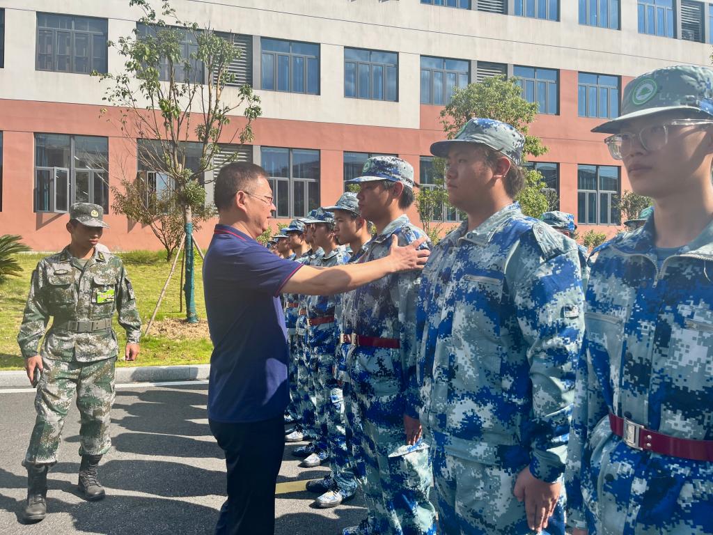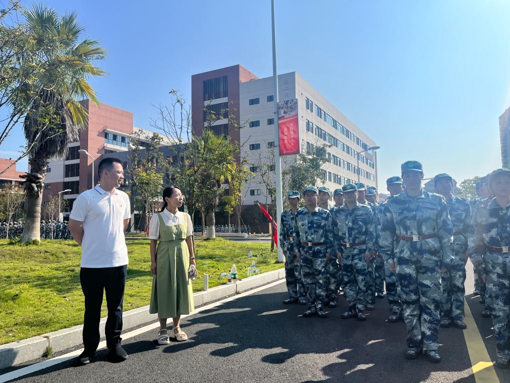 彭主任提醒教官和学生们要注意防暑,及时补充水分。他鼓励新生们在刻苦训练的同时,也要保重身体。彭主任也在现场发表了讲话,他对新生们提出殷切期望,希望他们能够在军训中培养吃苦耐劳的精神,学会坚韧不拔、迎难而上。魏书记对新生们的表现给予了高度评价,并认真倾听了教官对军训整体情况的汇报,对他们的辛勤付出表示关怀,军训不仅是对身体和意志的锻炼,更是一次团队精神和纪律观念的培养,希望新生们能够通过这次军训,更好地理解集体主义的重要性,为今后的大学生活打下坚实的基础。
