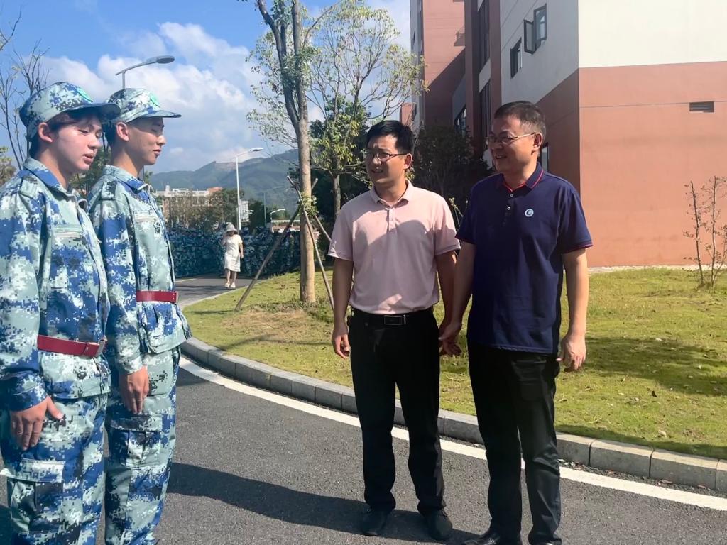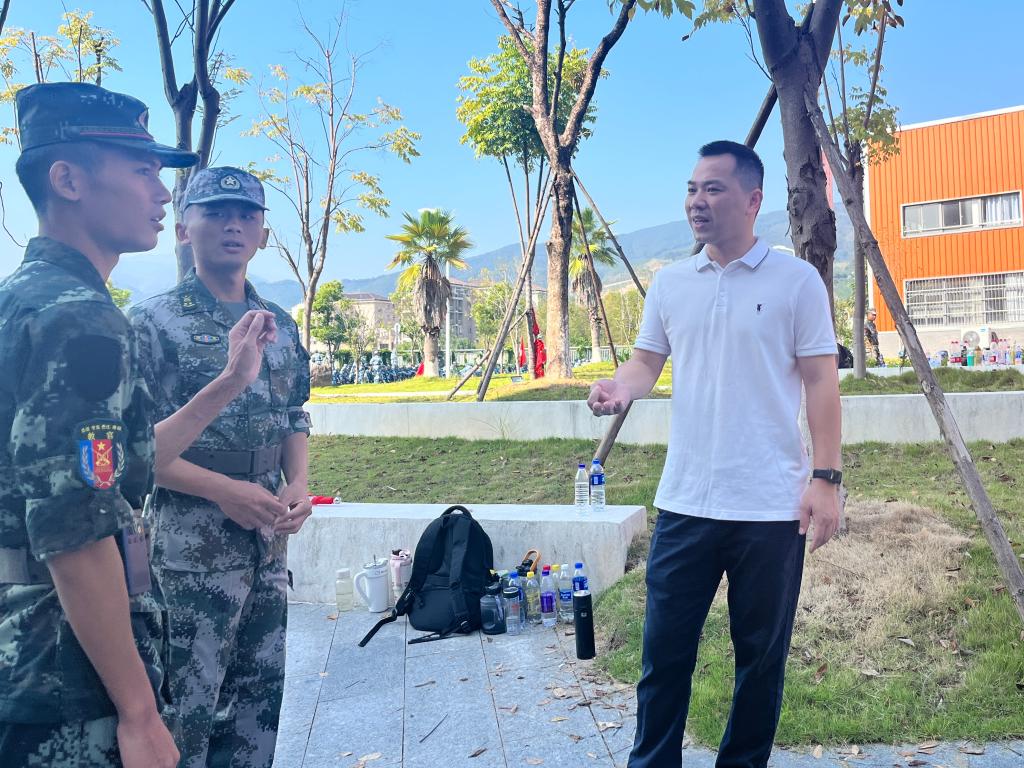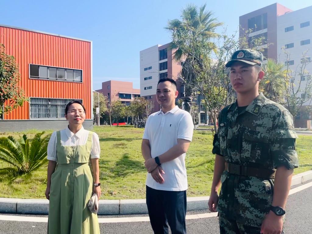 本网讯/2024年10月16日,建筑工程系党总支书记魏长专、建筑工程系主任彭忠伟、建筑工程系副主任张李平、建筑工程系学生科科长兼团总支书记刘克芹、建筑工程系教务科科长廖坤阳、建筑工程系党总支专职组织员叶新颖一行前往军训场地,亲切慰问正在参加军训的新生和教官。