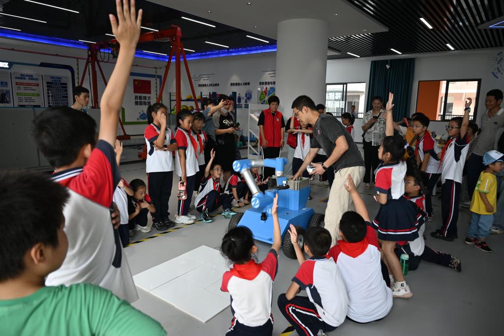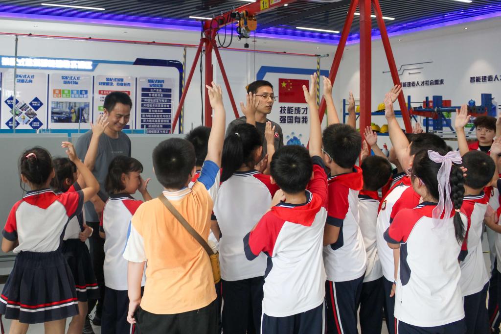 在参观过程中,小学生们积极提问,展现出了强烈的求知欲。张李平老师耐心地解答了他们的问题,并通过生动有趣的例子,让他们更好地理解了智能建造产业。