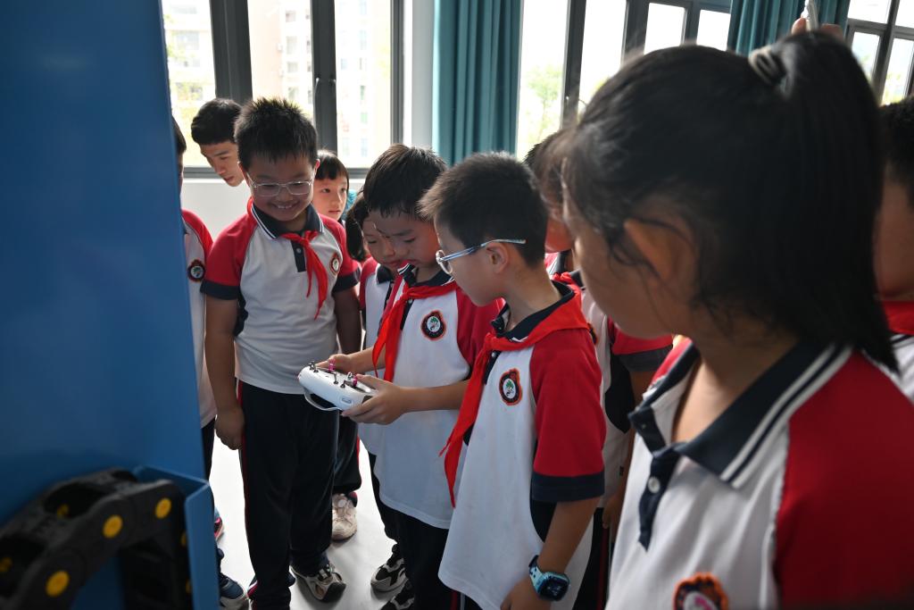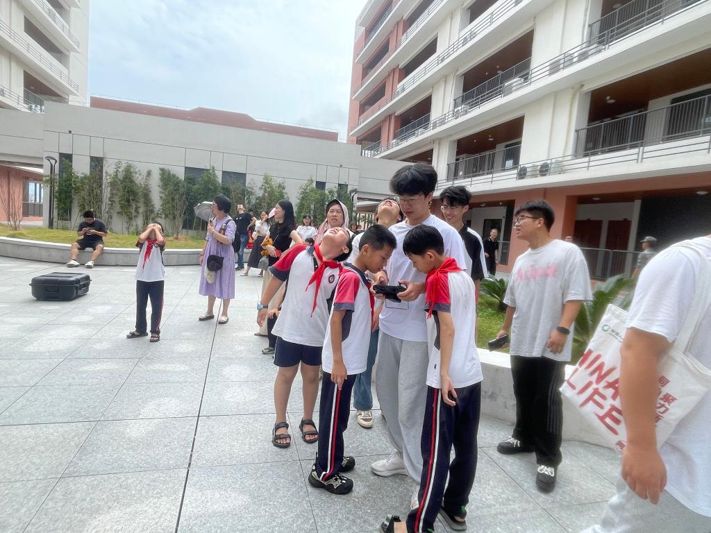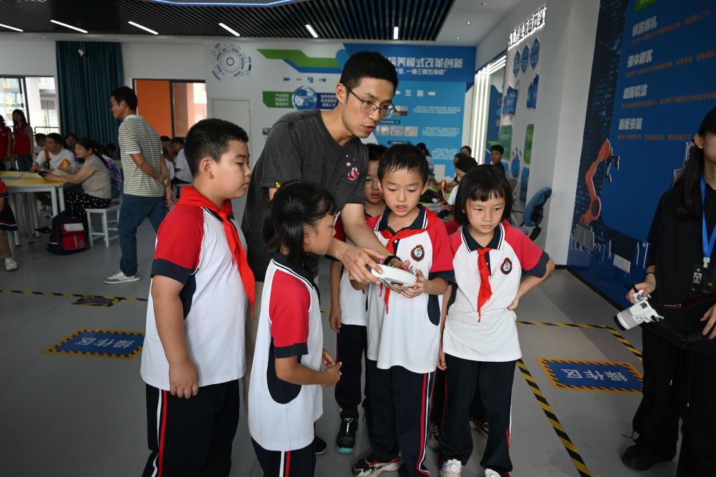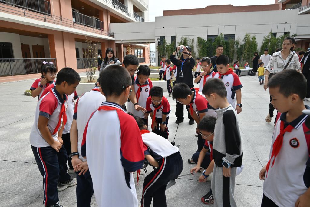 孩子们聚精会神地听着讲解,不时提出各种问题。“无人机是怎么飞起来的呀?”“它可以飞多高呢?” 技术人员耐心地一一解答,让孩子们对无人机有了更深入的了解。