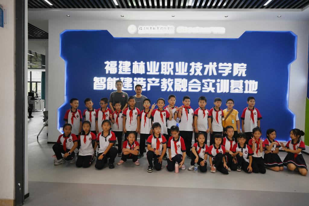 本网讯/2024年10月19日,南平市实验小学文体校区三年段部分学生和家委到福建林业职业技术学院开展交流活动并参观校园。一群充满好奇的小学生来到了建筑工程系智能建造产教融合实训基地进行参观学习。此次活动由张李平、廖坤阳、何福云老师及志愿者们热情带领讲解。