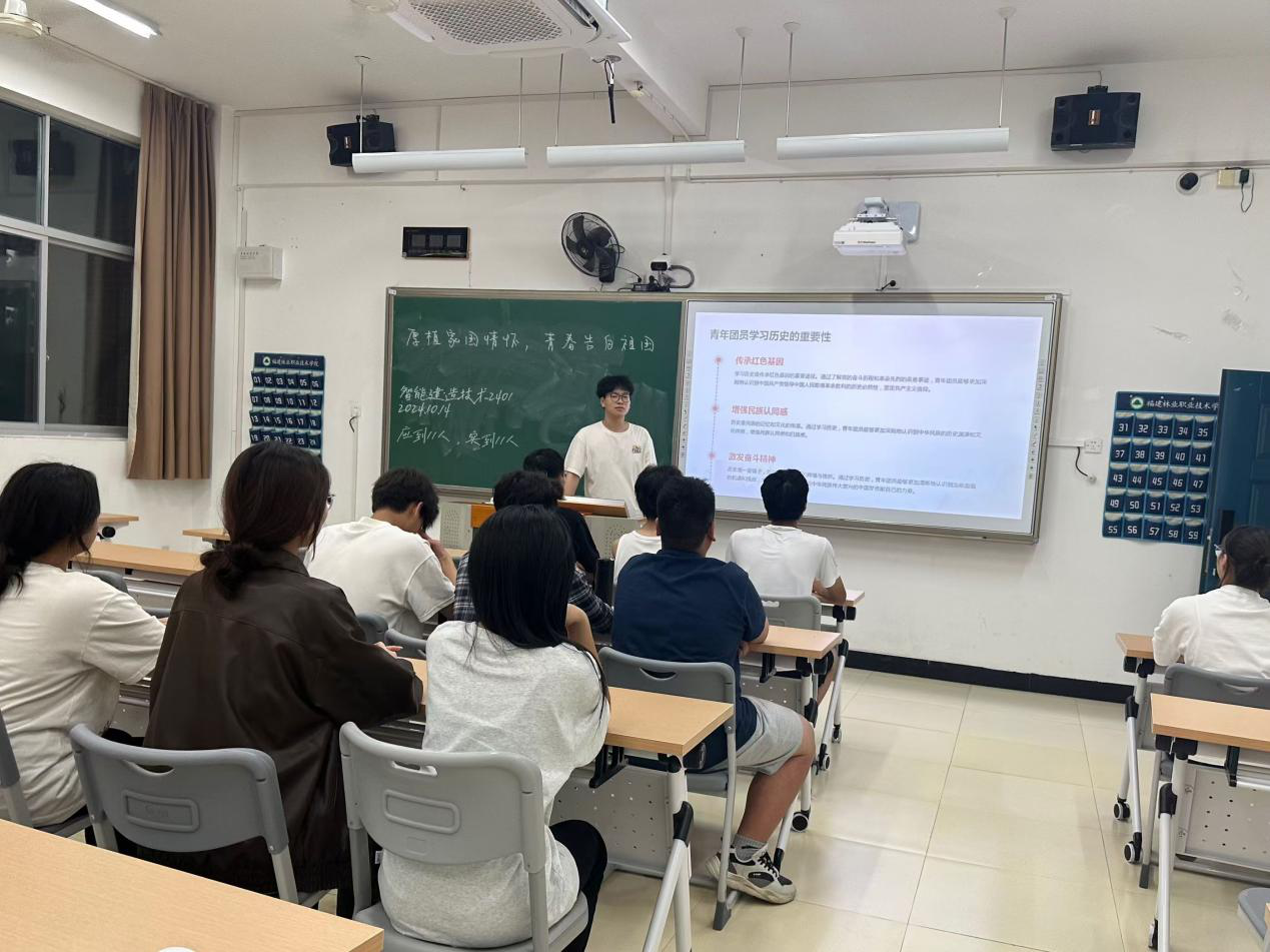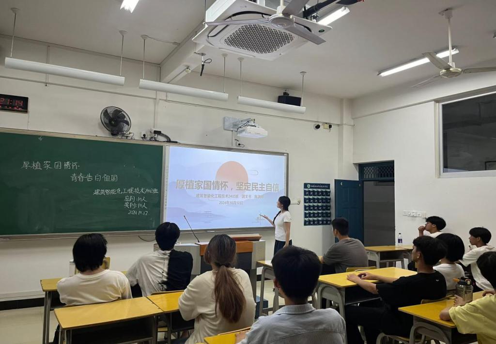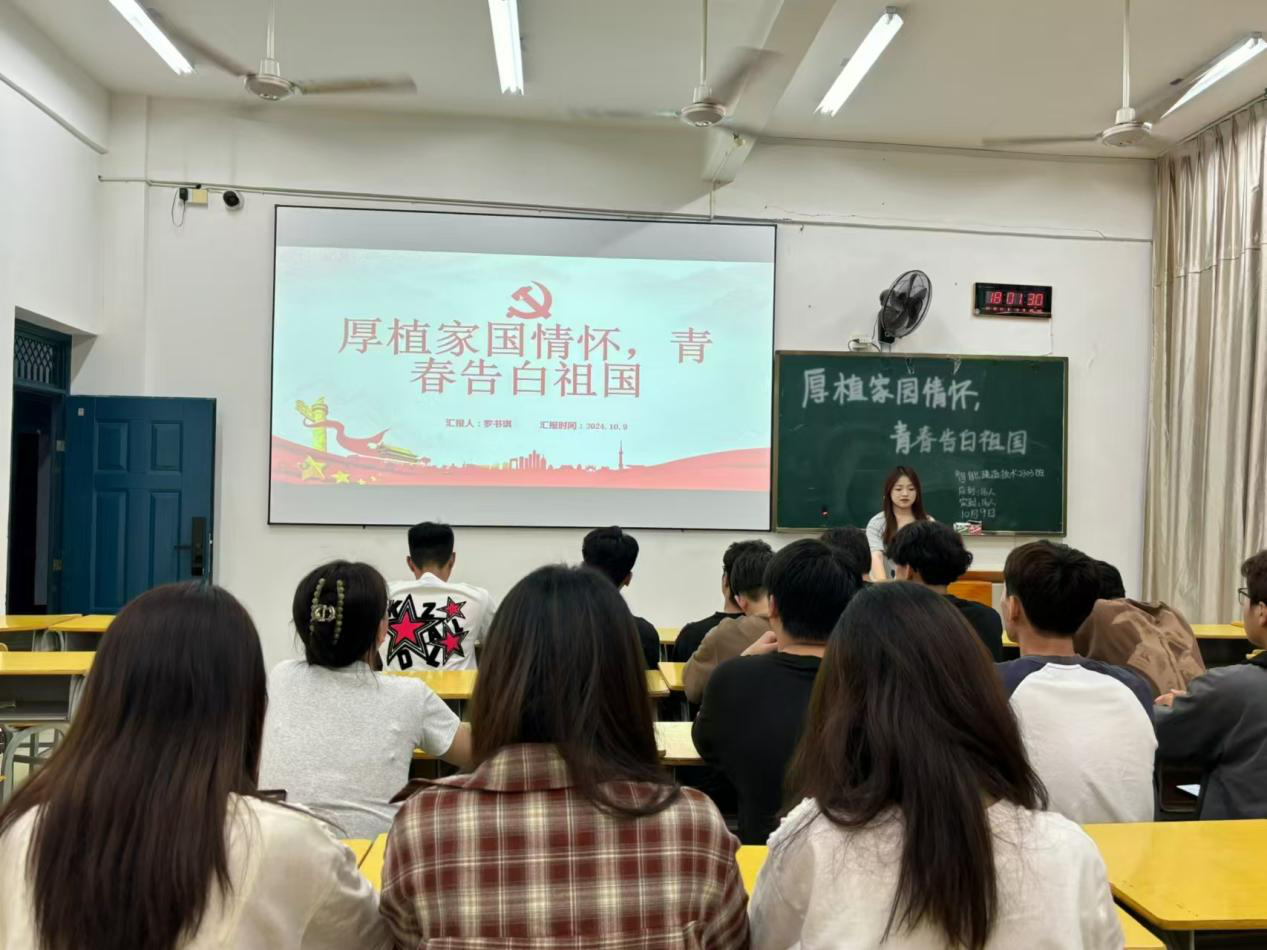 活动中,各班级团支部针对主题开始演讲,他们的话语如同涓涓细流,从不同角度、不同层面汇聚成对祖国的深情厚谊与美好祝愿。真挚的情感流露,让大家深切体会到家国情怀的深沉与博大。紧接着,同学们共同观看了展现祖国飞速发展的纪录片,从科技创新的日新月异到文化传承的生生不息,从城市的繁华景象到乡村的勃勃生机,每一帧画面都洋溢着祖国的强盛与活力,激发了他们内心的自豪与骄傲,更加坚定了同学们为祖国的繁荣富强贡献青春力量的信念。