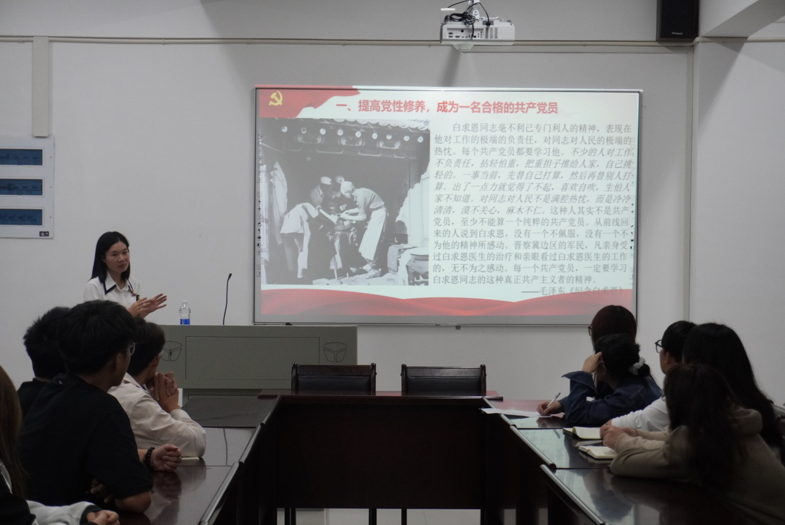 最后,陆晓莉副院长以案说教,就“新时代青年我们该如何做”进行了深刻阐述,提出了争做挺膺担当的爱国报国者的三点希望,一是要提高党性修养,成为一名合格的共产党员;二是要锤炼过硬本领,成为一名合格的社会主义建设者;三是要加强品德修养,做一个堂堂正正的人。并号召与会学生肩负起新时代赋予青年学生的重任,不断把中华民族复兴伟业和中国式现代化强国建设目标推向前进。