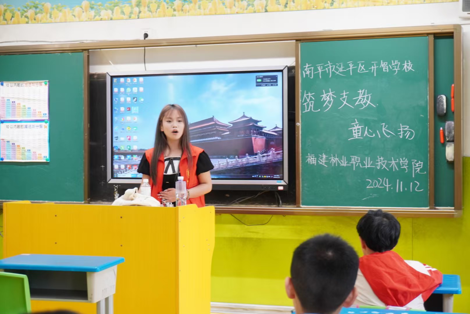 本网讯/党的十八大以来,习近平总书记对弘扬雷锋精神作出一系列重要论述,指出“让学雷锋活动融入日常、化作经常,让雷锋精神在新时代绽放更加璀璨的光芒”,福建林业职业技术学院建筑工程系筑梦小分队积极响应,11月12日,筑梦小分队前往延平区开智学校,开启了意义非凡的支教之路。本学期首次的支教活动,承载着满满的爱心与希望,犹如一道温暖的光,向着需要关爱的孩子们照去,力求在实践中践行雷锋精神,为特殊儿童送去知识与关怀,开启一段温暖心灵的支教之旅。