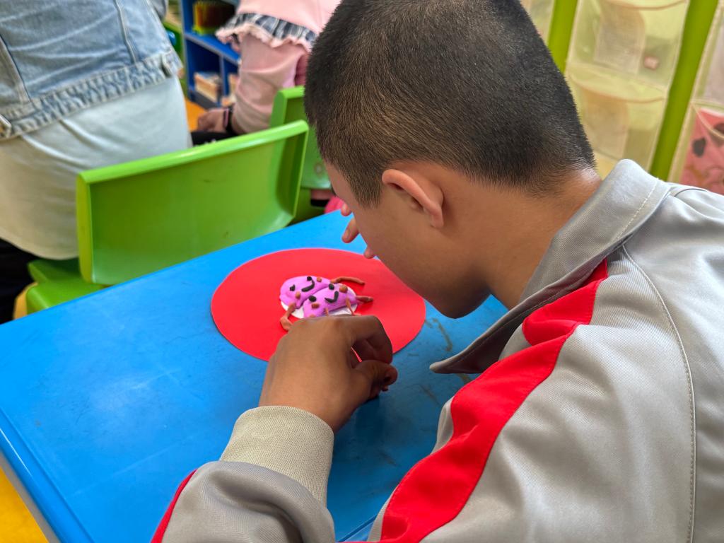 手工课上,志愿者就像一位神奇的魔法师,他们坐在孩子们中间,手指灵活地折叠彩纸,随后一个栩栩如生的千纸鹤就出现在大家眼前,那精巧的模样让孩子们发出阵阵惊叹。接着,志愿者又拿起彩泥,轻轻揉搓,一盘新春饺子跃然于掌心,每一个细节都处理得恰到好处。老师边做边耐心讲解,孩子们迫不及待地想要尝试,小小的手工世界里满是好奇与欢乐。