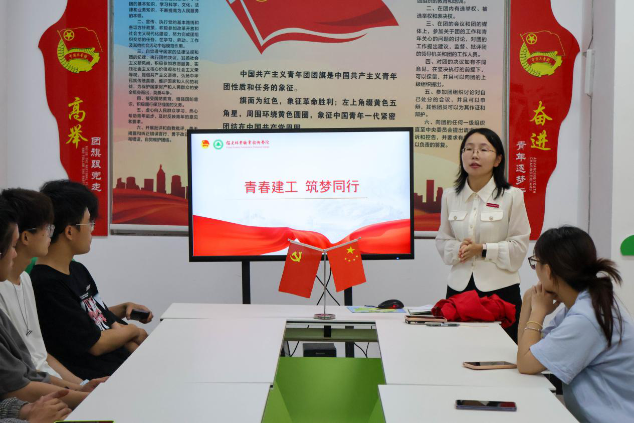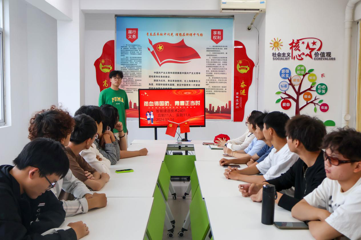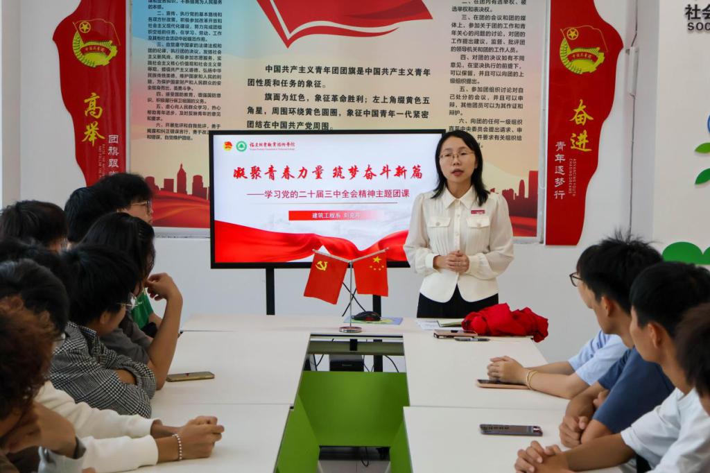 本网讯/为深入学习贯彻习近平新时代中国特色社会主义思想,切实领悟党的二十届三中全会精神,有力加强团组织建设,促进青年团员成长,11月14日,建筑工程系学生科科长兼团总支书记刘克芹老师组织功能型团支部团员在“一站式”学生社区立德空间,举行“凝聚青春力量,筑梦奋斗新篇——学习党的二十届三中全会精神主题团课”。