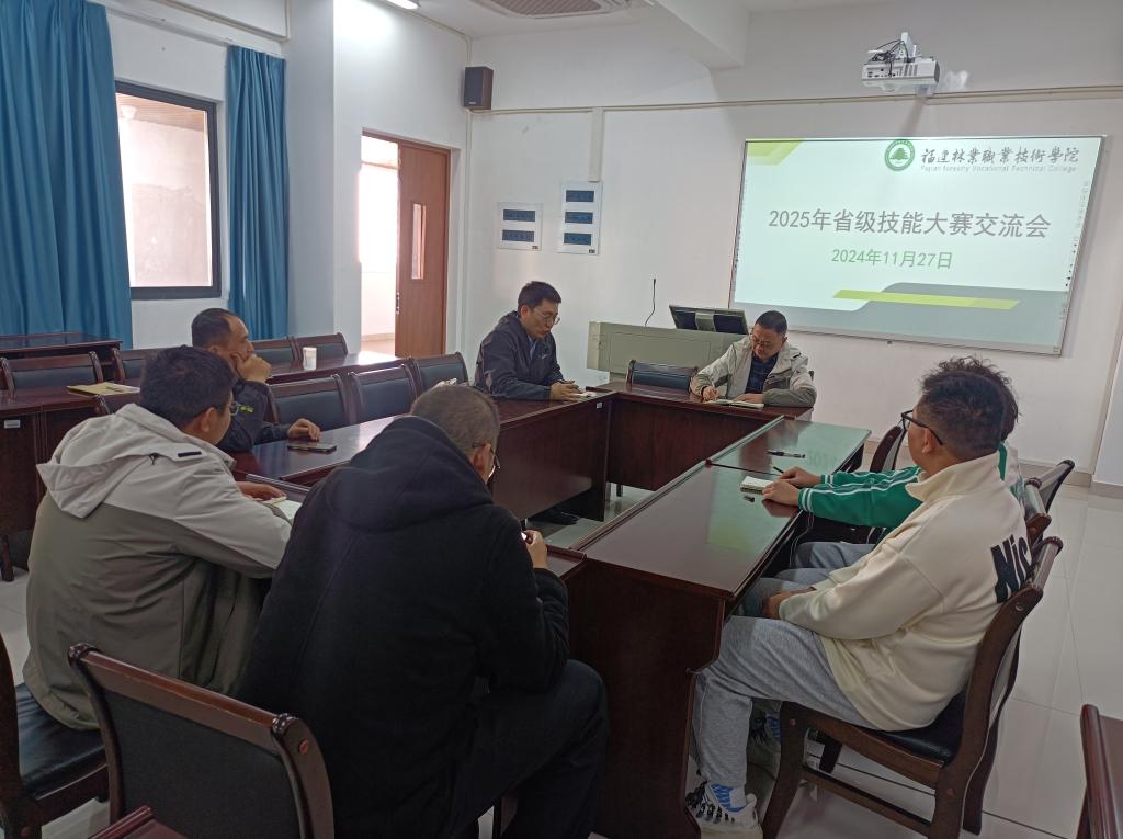 本网讯/2024年11月27日,广州中望龙腾软件股份有限公司经理邱俊莅临建筑工程系,与系主任彭忠伟、教研室主任陈龙及职业技能大赛指导老师们共同探讨2025年技能大赛的筹备工作。此次会议旨在深化校企合作,共同推动学生技能提升和职业发展。