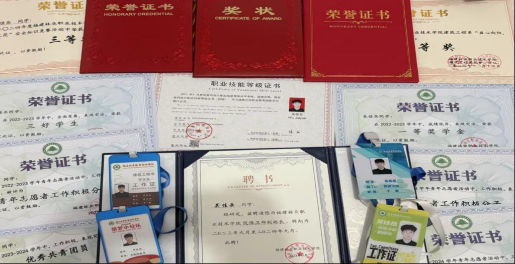 本网讯/吴佳岳,男,共青团员,福建林业职业技术学院建筑工程系2022级建筑室内设计专业,在大学校园里,他宛如一颗闪耀的明星,用自己的行动书写着属于新时代大学生的篇章。