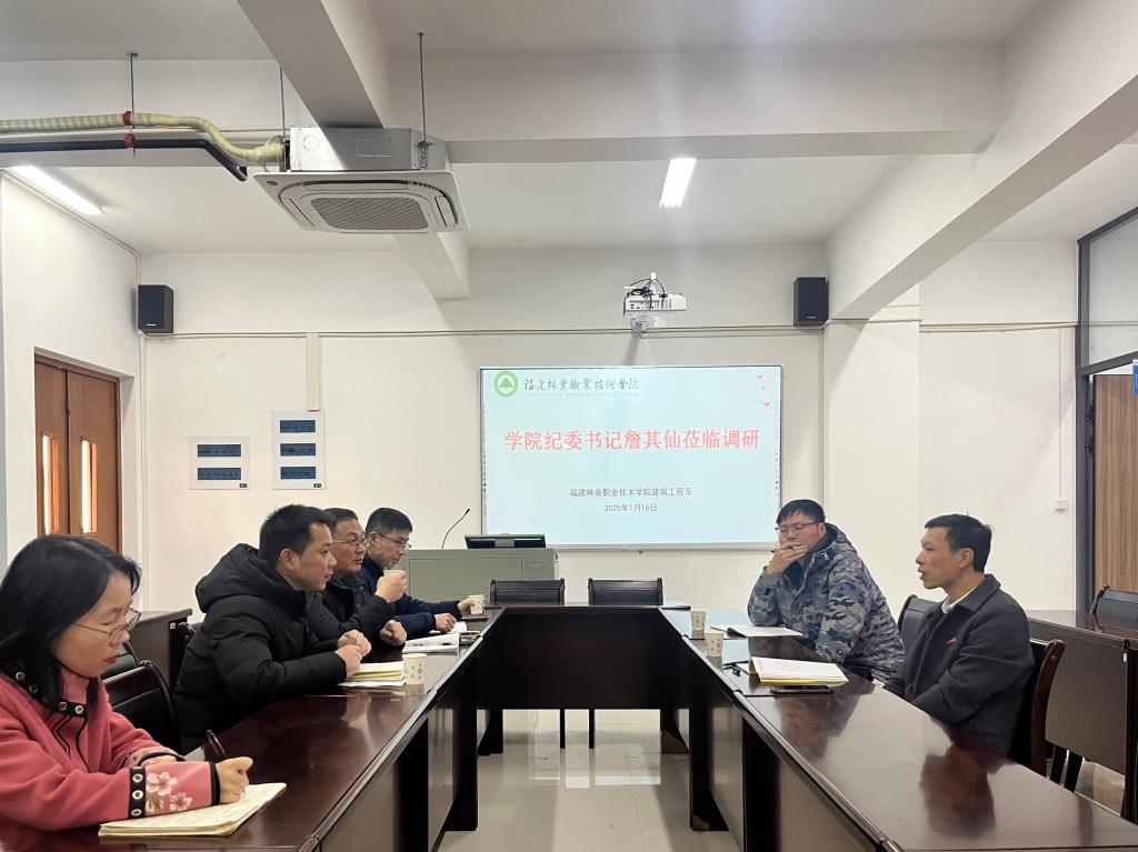 本网讯/2025年1月16日,福建林业职业技术学院纪委书记詹其仙深入建筑工程系,开展实地走访与调研。此次调研旨在深入了解建筑工程系的发展现状,掌握系部在教学、专业技能、党建及学生管理等方面的工作情况,为学院的整体发展提供有力支持。